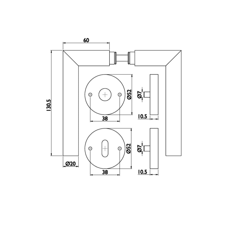 Meesenburg Artikelbezeichnung: ZTR.-DRÜCKERGRT. GEHRUNG 1802/2036 K PZ 60 EDELSTAHL MATT NEUTRAL VERP.