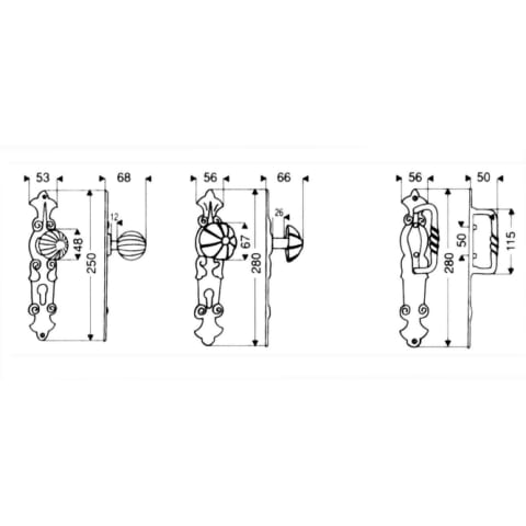 Innentür-Langschildgarnitur aus schwarzem Schmiedeeisern.