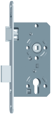 SAG, Zimmertür-Einsteckschloss, Wechsel: mit Wechsel, Lochung: Profilzylinder gelocht, Dornmaß: 55 mm, Entfernung: 72 mm, Drückernussvierkant: 8 mm, Stulpform: Flachstulp, Stulpbreite: 20 mm, Stulpaus