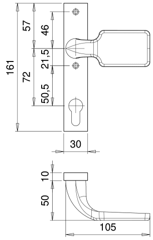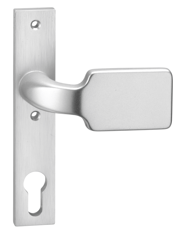 Innentür-Knopfschild 1317, mit Griff 310 fest, Aluminium silberfarbig eloxiert.