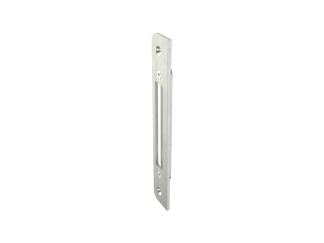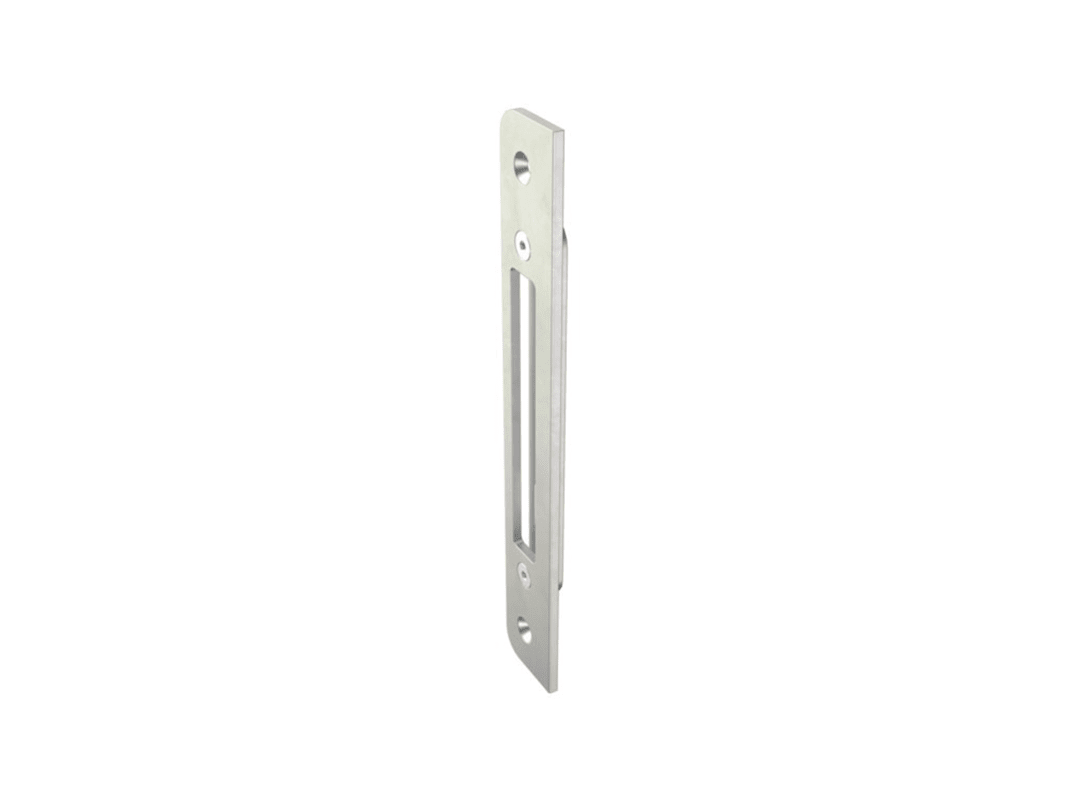 BEFESTIGUNGSMATERIAL FUER KABELUEBERGANG SERIE 400 UND 6XX, FLACHSCHLIESSBLECH 28 X 190 X 3 MM, ABGERUNDET, EDELSTAHL MATT GEBUERSTET, ZUR MONTAGE IM RAHMEN, FUER HOLZTUEREN MIT 4 MM FALZLUFT, FALZTIE