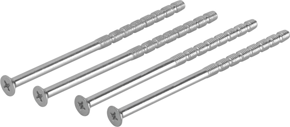 Schrauben-Set M5, aus Eisen, Gewindeschrauben M5 (verkürzbar) nach DIN 965 4.8 mit Kreuzschlitz-Senkkopf und Einstich, für Balkontür-Rosetten-Garnituren. Set mit je 4 Schrauben.