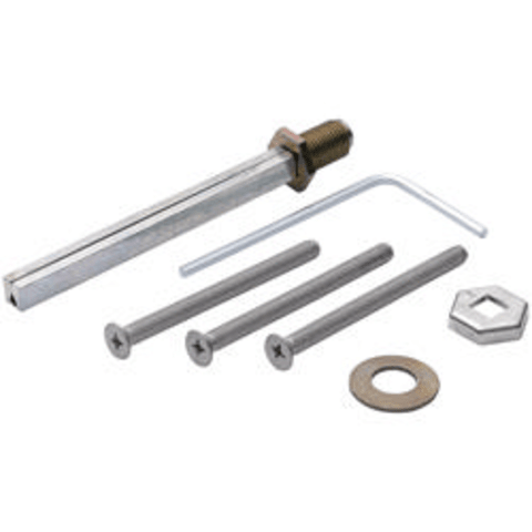 Befestigungs-Set, aus Eisen, HOPPE-FDW-Profilstift, Unterlegscheibe, Gewindeschrauben M6 nach DIN 965 10.9 mit Kreuzschlitz-Senkkopf, Montage-Hülse, Innensechskant-Schlüssel, für Hoppe Schutzbeschläge ES1 (SK2) aus Aluminium, Edelstahl und Messing mit verdeckter Verschraubung bzw. mit den Innenschildern (E/M)3310 und 2210.