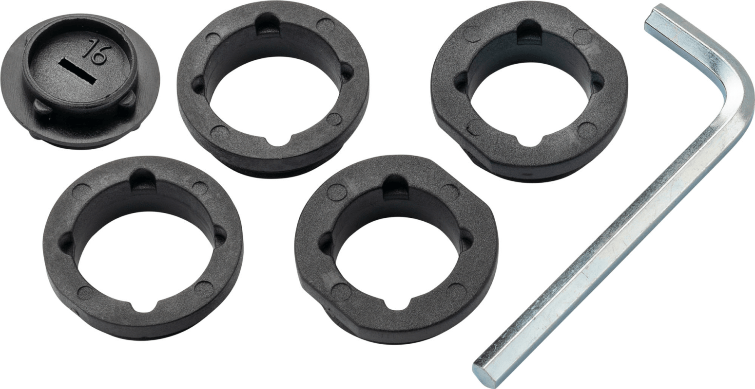 Zubehörbeutel für Glastürschloss, für Serie 6010..20..30..50..80..90/6140, 2 x Drückerführung Innendurchmesser 18 mm, 2 x Drückerführung Innendurchmesser 16 mm, inkl., Montagewerkzeug + Inbuss Schlüssel 4 mm