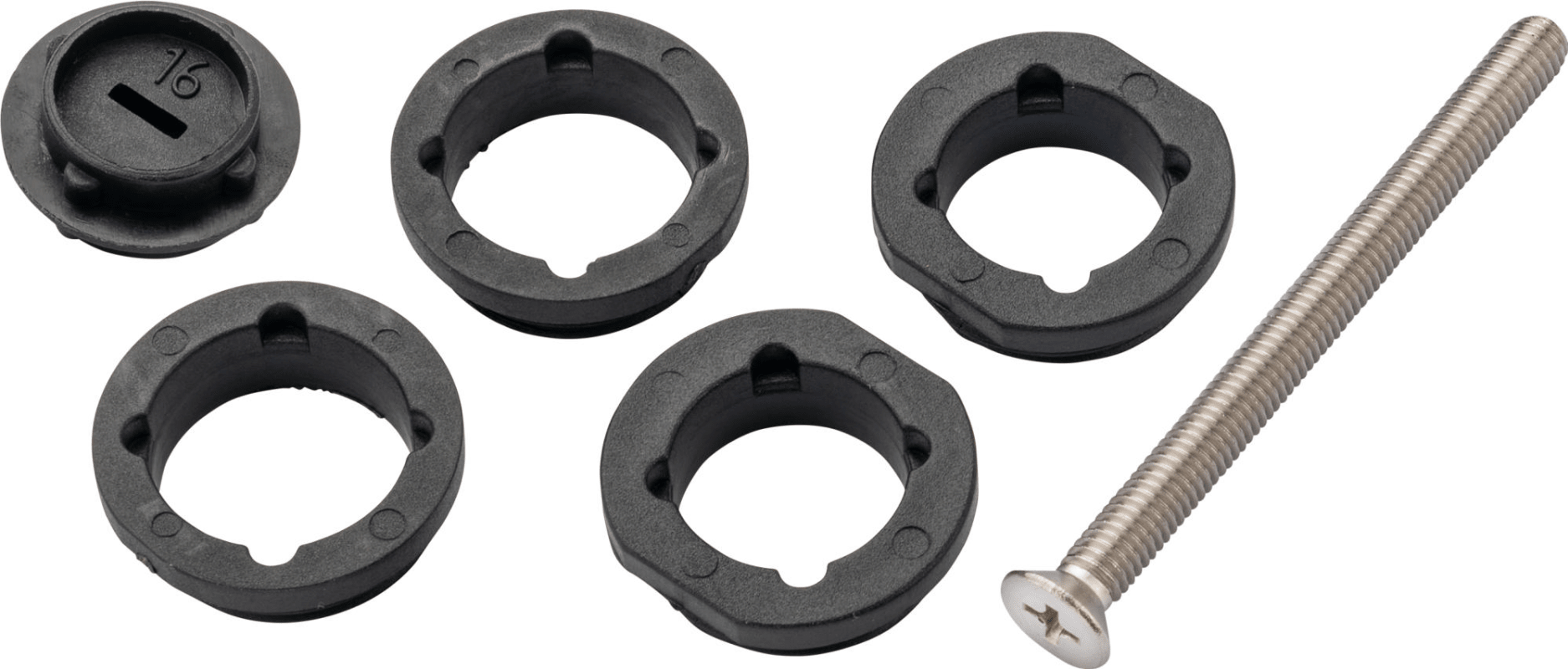 Zubehörbeutel für Glastürschloss, für Serie 6030/6050 PZ, 2 x Drückerführung Innendurchmesser 18 mm, 2 x Drückerführung Innendurchmesser 16 mm, inkl., Montagewerkzeug + Gew. Schrauben M5 x60 mm