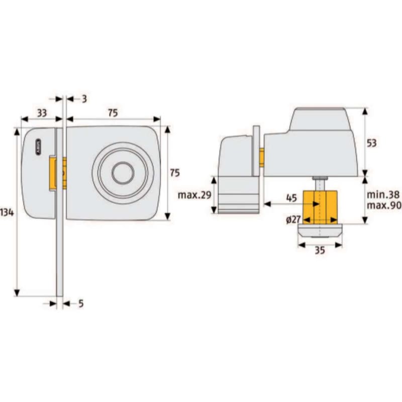 Besonders schmale, solide Konstruktion. Stabile Wandverankerung mit verdeckt liegenden Befestigungselementen. Dornmaß: 45 mm. Stabiler Ovalriegel aus Vollstahl, zweitourig schließend. Gehäuse aus Zink