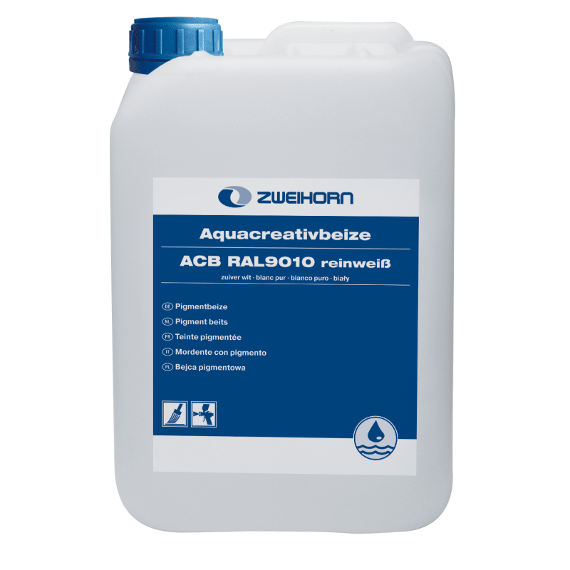 Flüssige, pigmentierte, gebrauchsfertige Beize auf Wasserbasis mit modernen, von transparent bis deckend reichenden Holz- und Bunttönen mit egalisierender Wirkung. Über das Zweihorn Beizenmischsystem