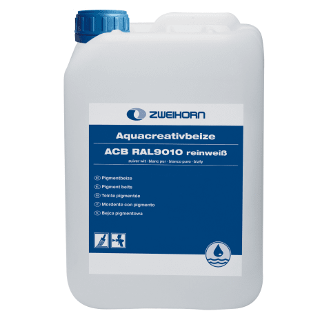 Flüssige, pigmentierte, gebrauchsfertige Beize auf Wasserbasis mit modernen, von transparent bis deckend reichenden Holz- und Bunttönen mit egalisierender Wirkung. Über das Zweihorn Beizenmischsystem sind selbst Farbtöne nach RAL, Sikkens, NCS oder eigenen Mustervorlagen herzustellen. Je nach Auftragsart lassen sich mit Aquacreativbeize unterschiedliche Beizbilder erzeugen: durch den Auftrag mit einem Pinsel auf grobporige Hölzer wird ein rustikaler Effekt erzielt, durch den Auftrag mittels Spritzpistole bleibt die Pore unbenetzt. Aquacreativbeize ist geeignet für alle gebräuchlichen Hölzer wie z.B. Buche, Eiche, Esche, Kirschbaum usw. Alle Farbtöne der Aquacreativbeize lassen sich unbegrenzt untereinander mischen. Als Finish sind alle gängigen Zweihorn®-Klarlacke, sowie einige Produkte aus der Naturtrend-Reihe geeignet.