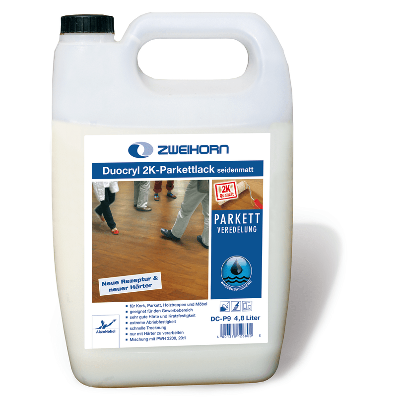 Meesenburg Artikelbezeichnung: ZWEIHORN DUOCRYL 2K-WASSER-PARKETTLACK DC-P9 IN 4,8 LTR. GEB. 5074324 SEIDENMA.
