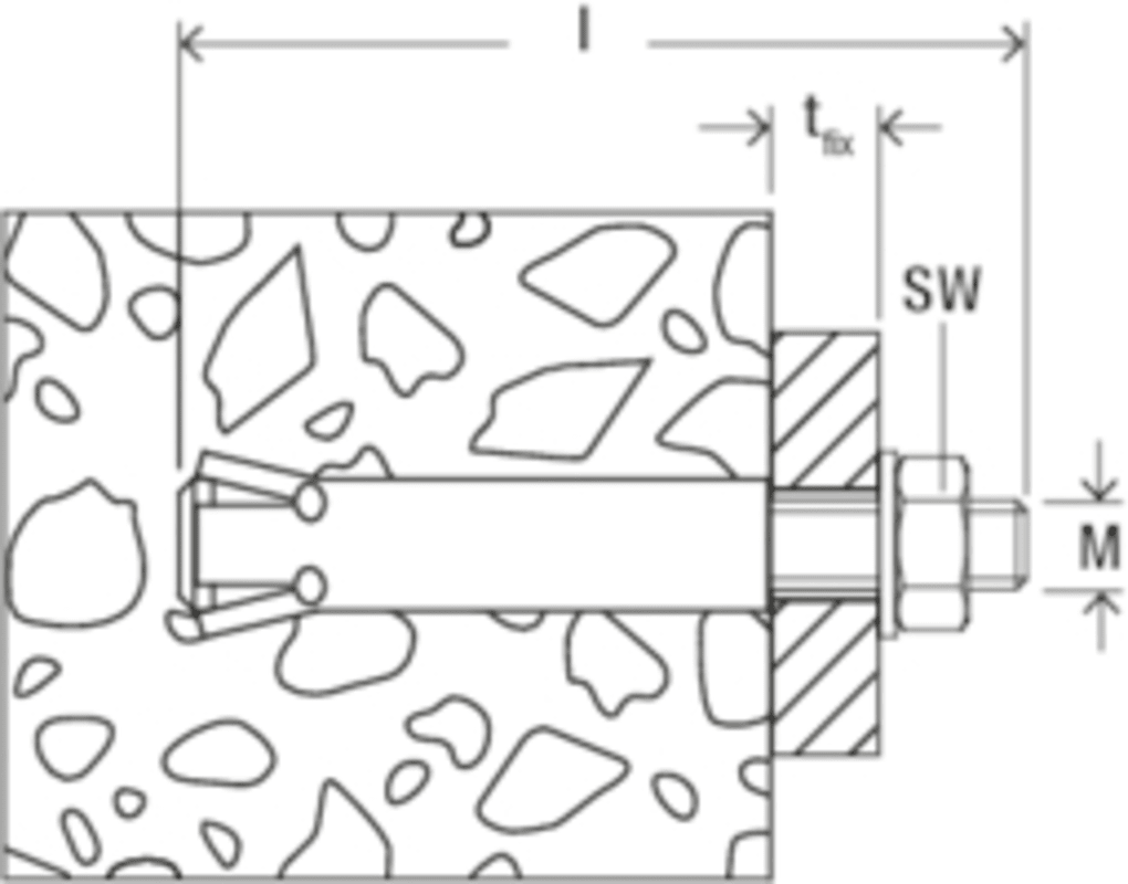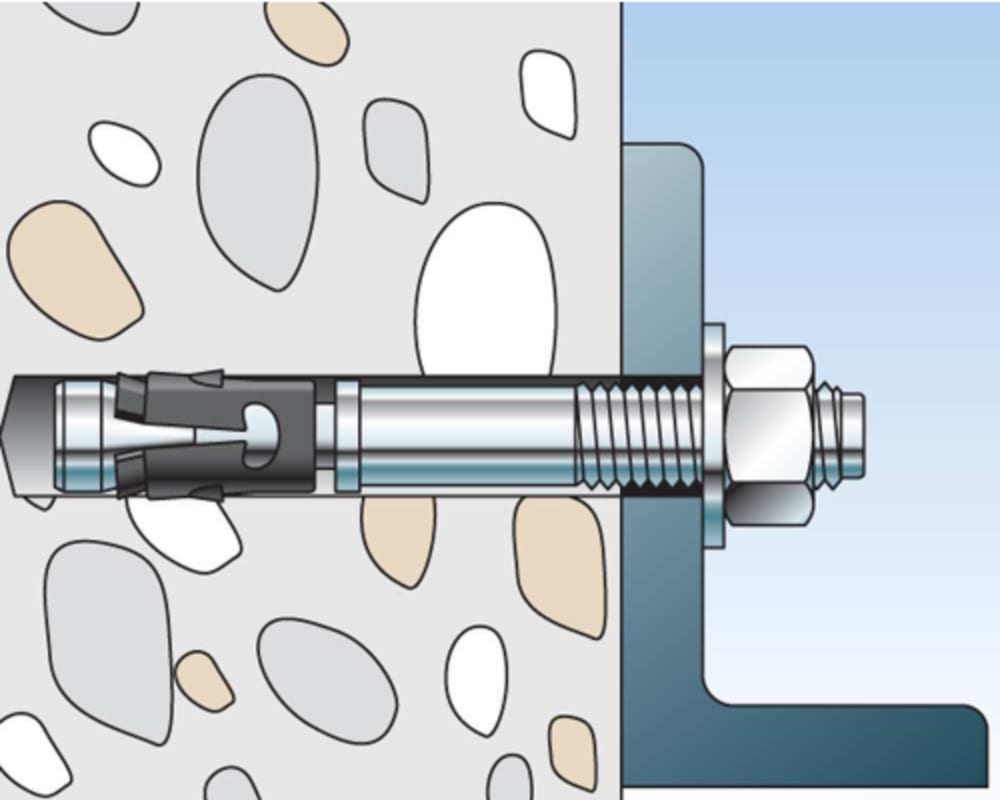 Der fischer ZYKON-Bolzenanker FZA ist ein Anker aus nicht rostendem Stahl. Mit dem Spezialbohrer FZUB wird in einem Arbeitsgang das hinterschnittene Bohrloch erstellt. Der Hinterschnittanker wird in d