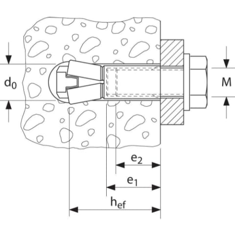 • Die beim Verspreizen des Ankers aufgebrachte Prägung sichert die einfache Kontrolle der Verankerung