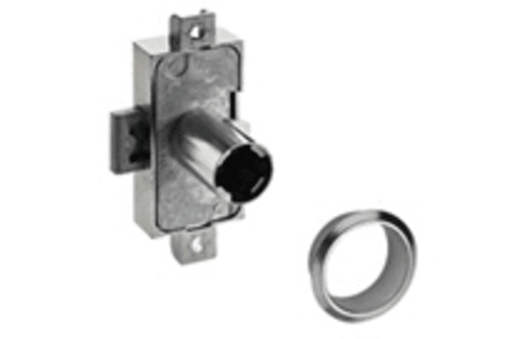 HETTICH, Möbel-Zylinderdrehstangenschloss, Modell: Trikey, Modellnummer: 9133889, Ausführung: zur Aufnahme von Zylinderkern, mit einstellbare Schlüsselabzugssperre, Ergänzung: mit Rosette, Dornmaß: 15