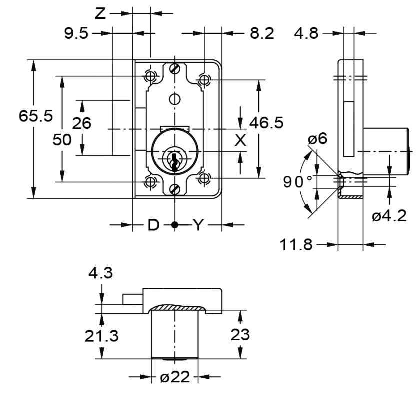 • Riegeltiefe: 4,8 mm