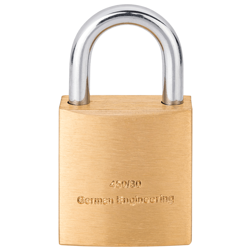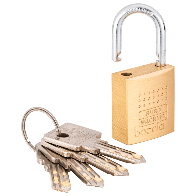 Der massive Messingkörper und der doppelt verriegelte, gehärtete Bügel machen das BURG-WÄCHTER Zylinder-Vorhängeschloss Boccia 450 30 4 SB besonders robust. Mehr Komfort beim Öffnen und Schließen bieten 4 Wendeschlüssel in der Ausstattung. Das High-Tech Innenwerk ist rostfrei. Eine große Anzahl an möglichen Schließungen erhöht zusätzlich die Sicherheit.