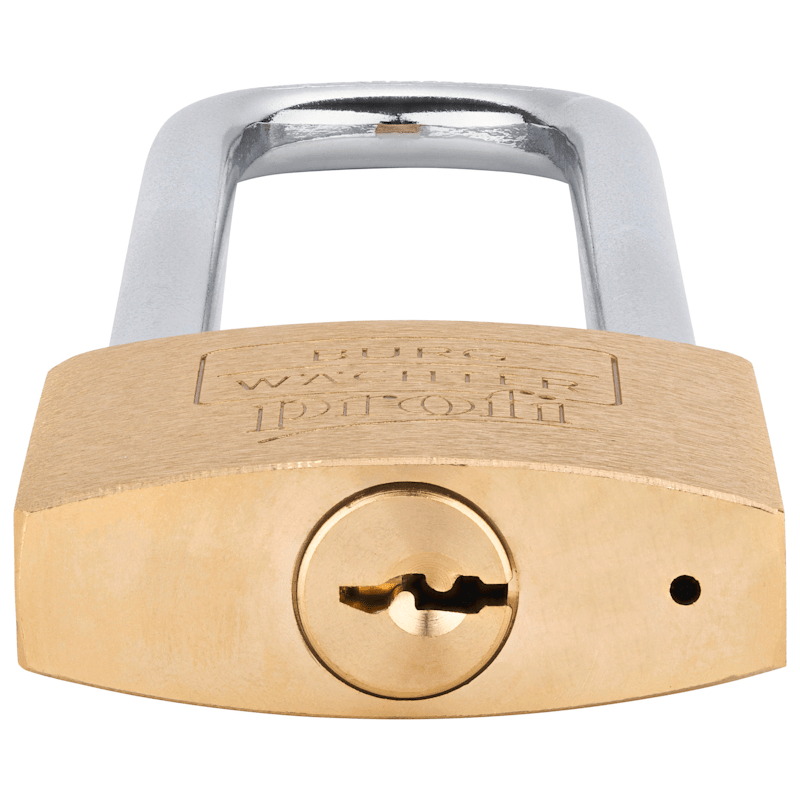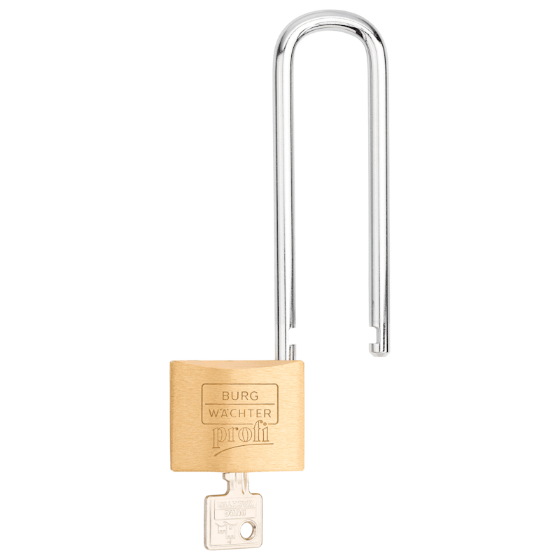 Das BURG-WÄCHTER Zylinder-Vorhängeschloss Profi 116HB 50 110 hat einen massiven Messingkörper mit rostfreiem Innenwerk. Der hohe Bügel ist stahlhart und doppelt verriegelt. Das Präzisions-Schließwerk