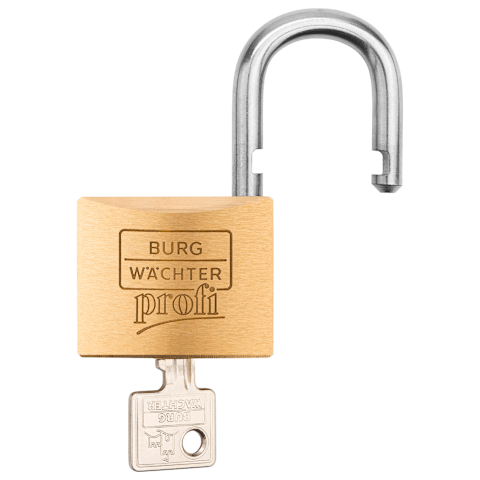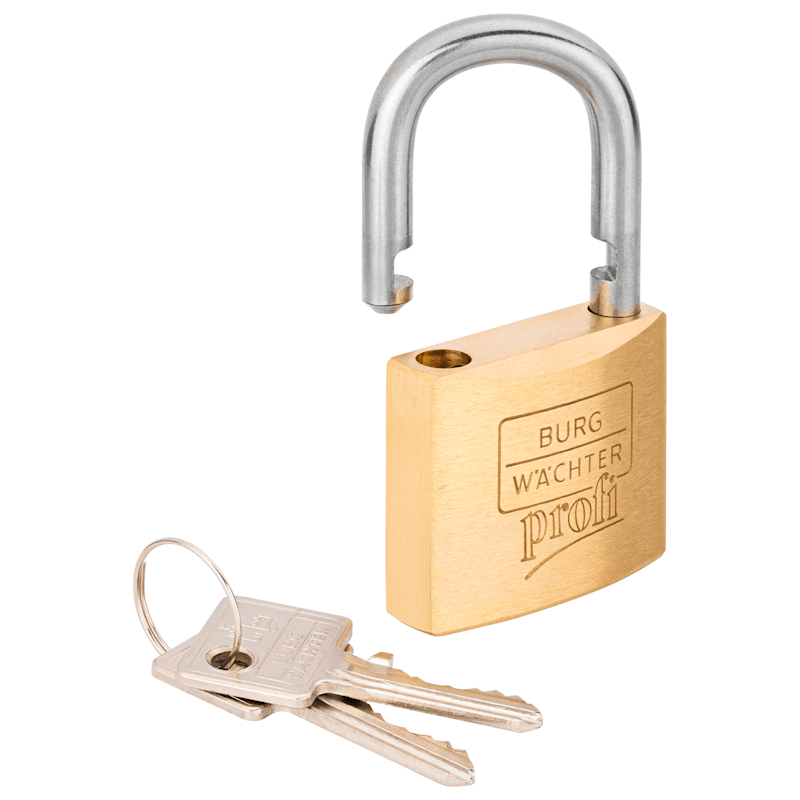 Das BURG-WÄCHTER Vorhängeschloss 116 Ni Profi mit dem massiven Messingkörper sichert Tore, diverse Gegenstände und vieles mehr. Der Bügel des Profi Schlosses besteht aus rostfreiem Edelstahl und ist s