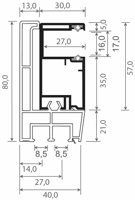 Adapterprofil 80x43 mm Lg. 6,00 m