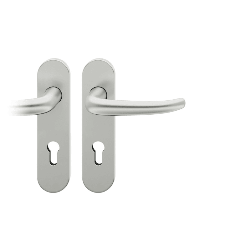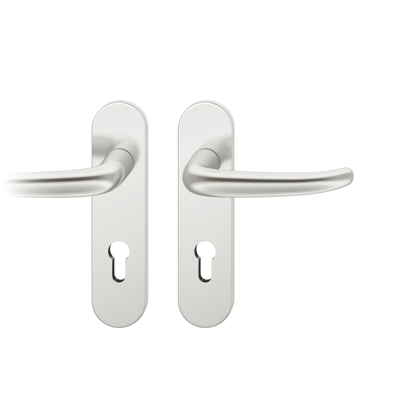 AGL3-Drückergarnitur rechts, 8mm PZ 72mm ovales Kurzschild, max. 35°, TS 39-48mm, Aluminium naturfarbig