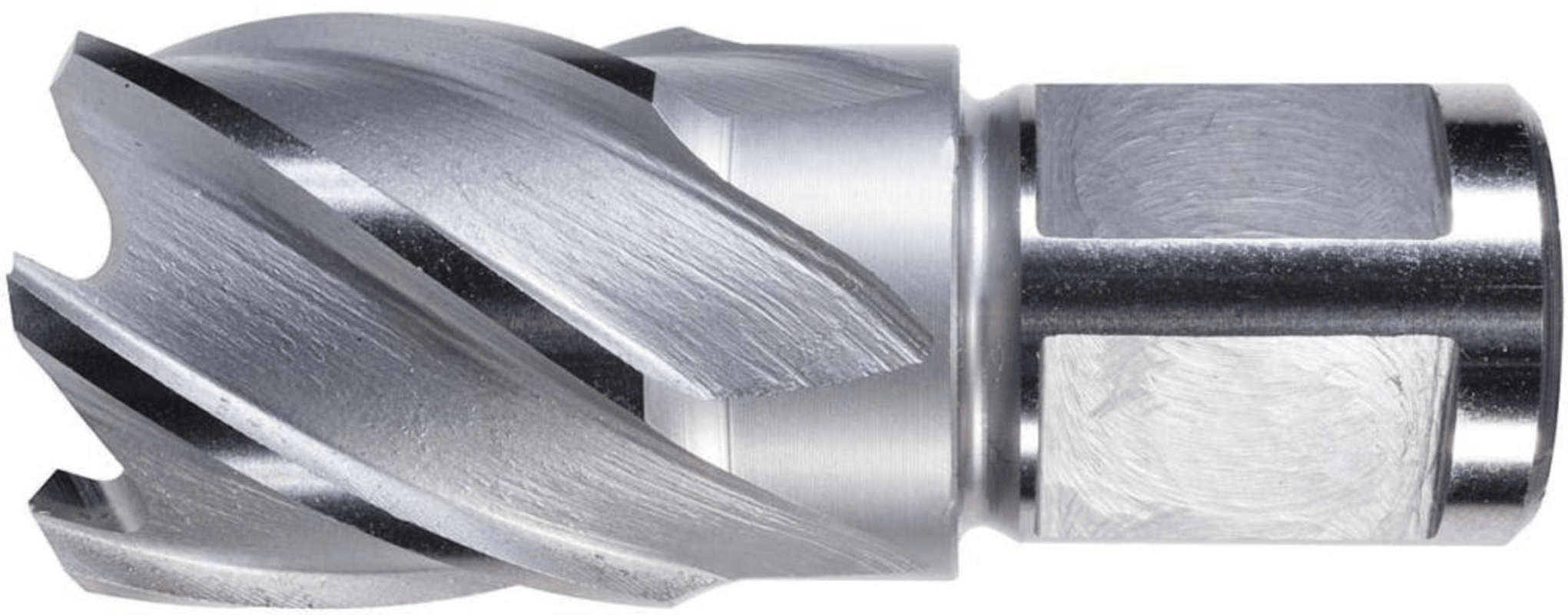 Kernbohrer, blank• HSS • Mit 19 mm Weldonschaft, 2 Mitnahmeflächen • Innenbohrung 6,35 mm • Kernbohrer zerspant nur einen dünnen Materialring • Ausstoßen des stehengebliebenen Bohrkerns über Führu