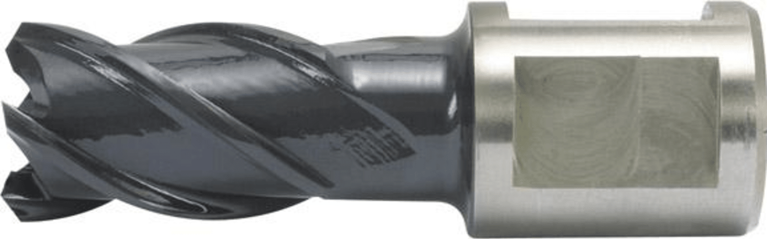Kernbohrer, RQX-beschichtet• HSS • Mit 19 mm Weldonschaft • Innenbohrung 6,35 mm • Kernbohrer zerspant nur einen dünnen Materialring • Ausstoßen des stehengebliebenen Bohrkerns über Führungs- und