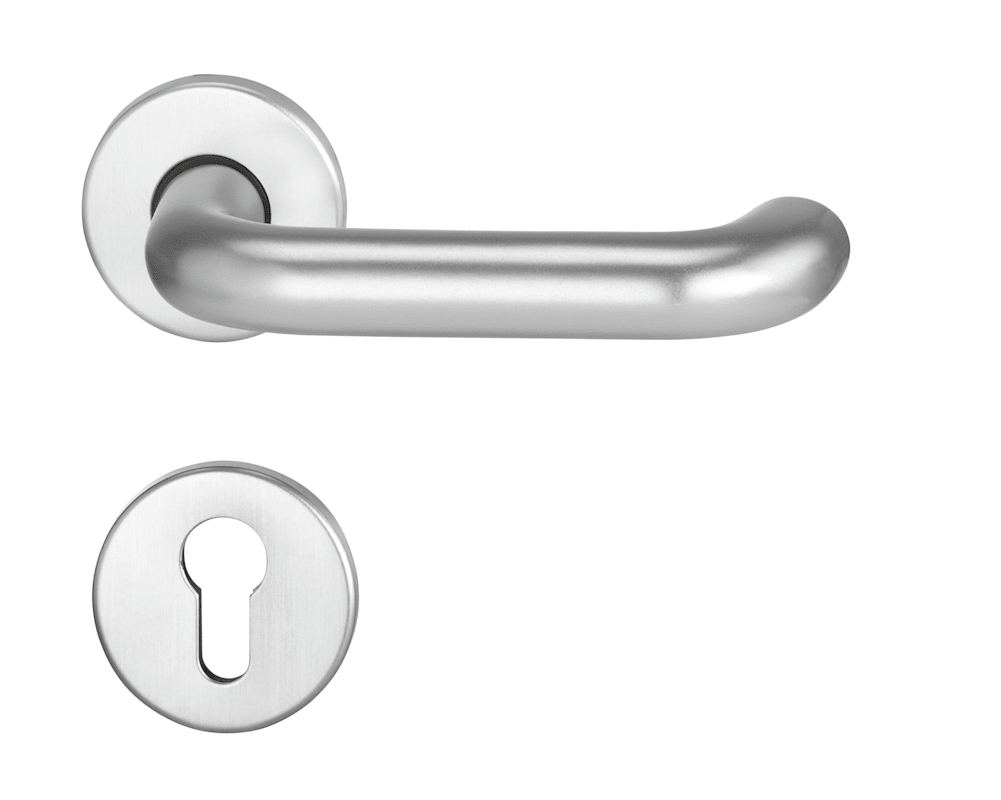 Halbgarnitur Riva 2103/5256, Rosette, rund, Profilzylinder gelocht, Vierkant 10mm, DIN Links-Rechts, mit Stütznocken, naturfarben eloxiert festdrehbar