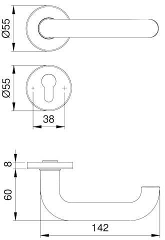 Halbgarnitur Riva 1103/5356, Rosette, rund, Profilzylinder gelocht, Vierkant 8mm, DIN Links-Rechts, ohne Stütznocken, naturfarben eloxiert festdrehbar