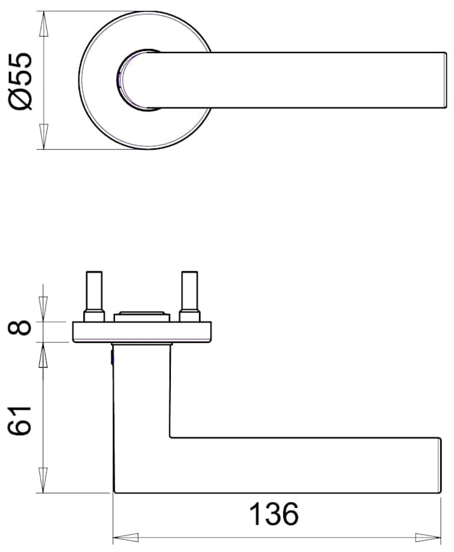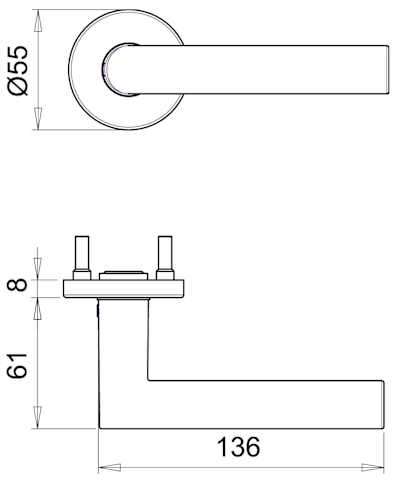 Halbgarnitur Riva 1108/5200, ohne Schlüsselrosette, rund, Vierkant 8mm, DIN Links-Rechts, mit Stütznocken, naturfarben eloxiert festdrehbar
