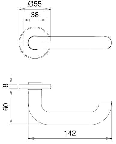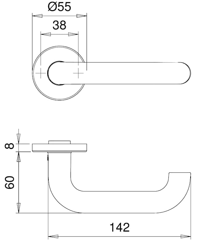 Halbgarnitur Riva 2103/5300, ohne Schlüsselrosette, rund, Vierkant 10mm, DIN Links-Rechts, ohne Stütznocken, naturfarben eloxiert festdrehbar