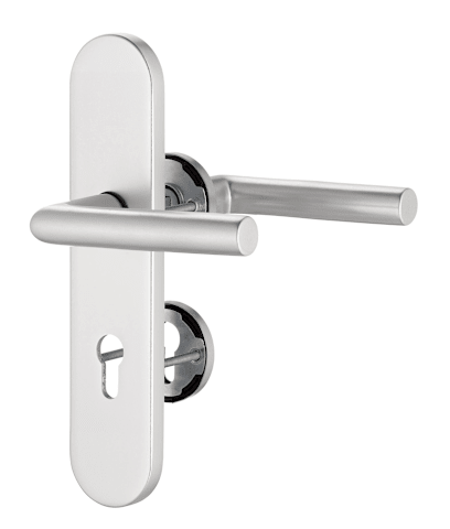 Schutz-Kombi-Drückergarnitur Metis FS 5741/7203, Langschild/Rosette, 12mm, ES 1, mit Zylinderabdeckung, Profilzylinder gelocht, Entfernung 72mm, Vierkant 9mm, TS 35 - 45mm, silber, naturfarben, eloxie
