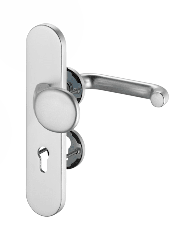 Schutz-Kombi-Wechselgarnitur Metis FS 5721/0272, Langschild/Rosette, 12mm, ES 1, ohne Zylinderabdeckung, Profilzylinder gelocht, Entfernung 72mm, Vierkant 9mm, TS 35 - 45mm, silber, naturfarben, eloxiert