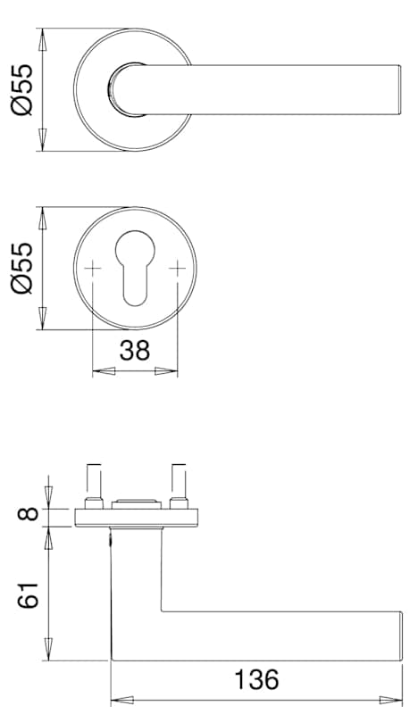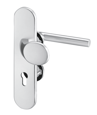 Schutz-Kombi-Wechselgarnitur Metis FS 5741/0272, Langschild/Rosette, 12mm, ES 1, ohne Zylinderabdeckung, Profilzylinder gelocht, Entfernung 72mm, Vierkant 9mm, TS 35 - 45mm, silber, naturfarben, eloxi