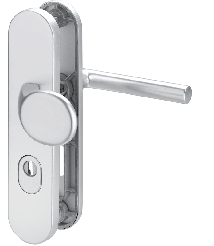 FH Vollblatt Sicherheits-Wechselgarnitur Delta FS 5737/0272,Langschild,ES 3,mit Zylinderabdeckung 72/9,DIN Links-Rechts,naturfarben eloxiert,Türstärke39-48,gekröpft/L-Form fest