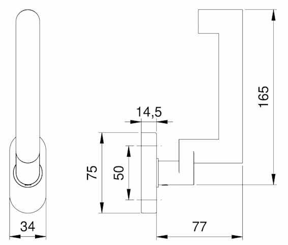 FH Standflügelgarnitur Ares 1460, ohne Schlüsselrosette, oval, Vierkant 9mm ohne Stütznocken, naturfarben eloxiert