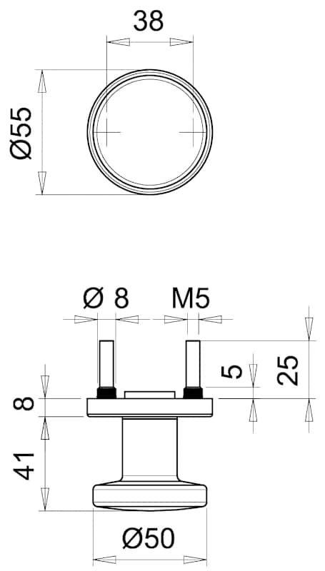 Knopf K7 2052/7020, Ausführung Türgriff (außen) fest, Rosette, rund, DIN Links-Rechts, mit Stütznocken, naturfarben eloxiert