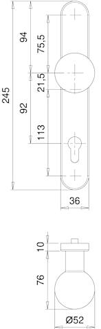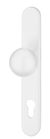 Knopfschild Kronos 0000/5135, außen, Langschild oval, Profilzylinder gelocht, Entfernung 92mm, DIN Links-Rechts, mit Stütznocken, verkehrsweiß beschichtet