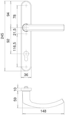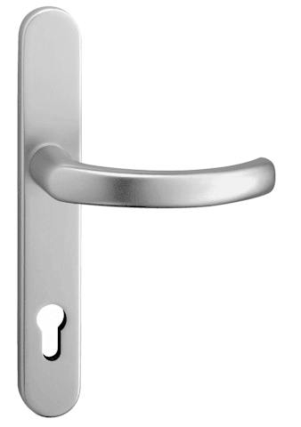 Halbgarnitur Kronos 2005/0135, außen, Langschild oval, Profilzylinder gelocht, Entfernung 92mm, Vierkant 8, DIN Links-Rechts, mit Stütznocken, stahlfarbig eloxiert, festdrehbar