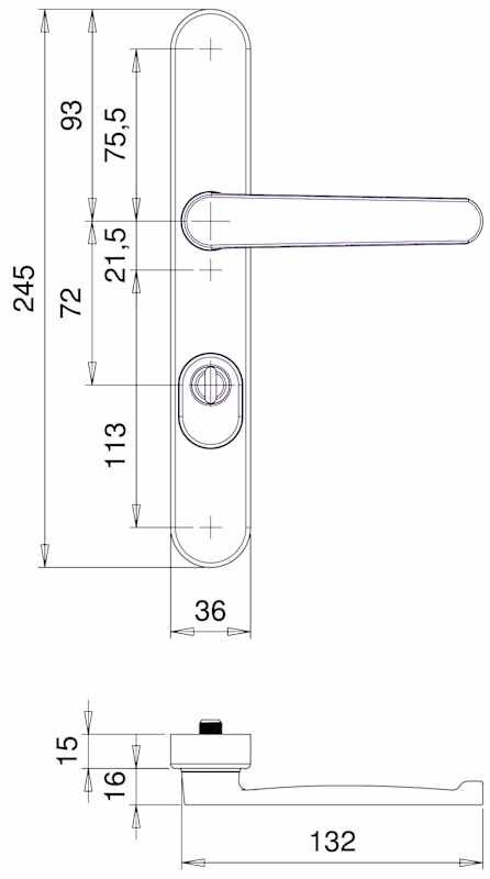 Rohrrahmen Sicherheits-Drückergarnitur Kronos 1200/9645,Langschild,mit Zylinderabdeckung 72/8,DIN Links-Rechts,verkehrsweiß beschichtet,gerade/U-Form gekröpft