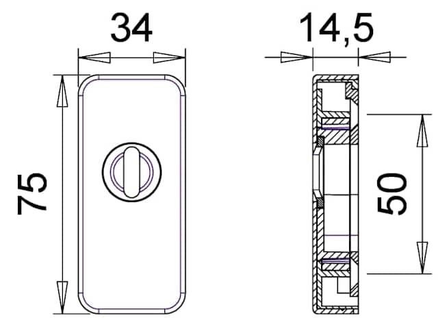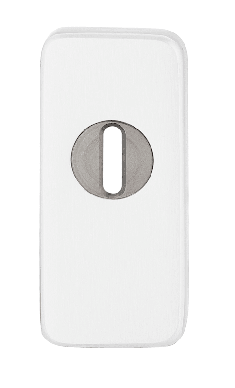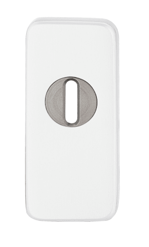 Schutzrosette Keto 0812/14, aufliegend, eckig, 14,5mm, mit Zylinderabdeckung/Profilzylinder gelocht, RAL 9016 beschichtet, ohne Stütznocken