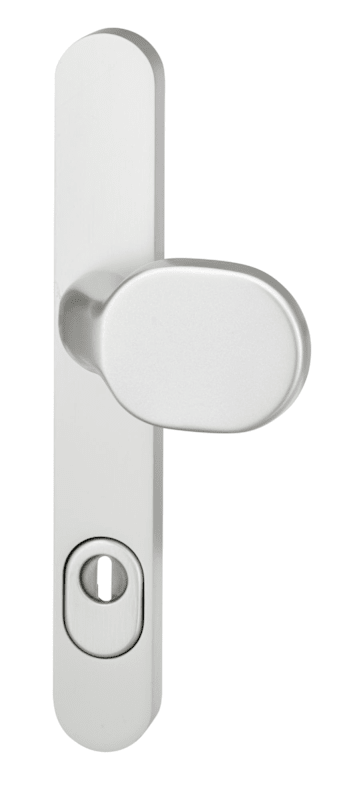 Rohrrahmen Sicherheits-Wechselgarnitur Kronos 1200/2645,Langschild,mit Zylinderabdeckung 72/8,DIN Links-Rechts,naturfarben eloxiert,gekröpft/U-Form gekröpft fest