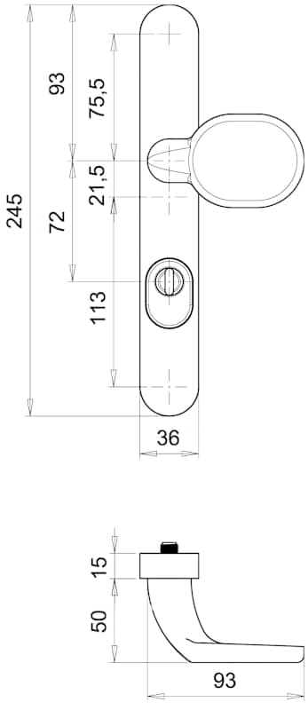 Rohrrahmen Sicherheits-Wechselgarnitur Kronos 1200/2645,Langschild,mit Zylinderabdeckung 72/8,DIN Links-Rechts,verkehrsweiß beschichtet,gekröpft/U-Form gekröpft fest
