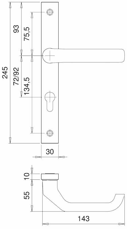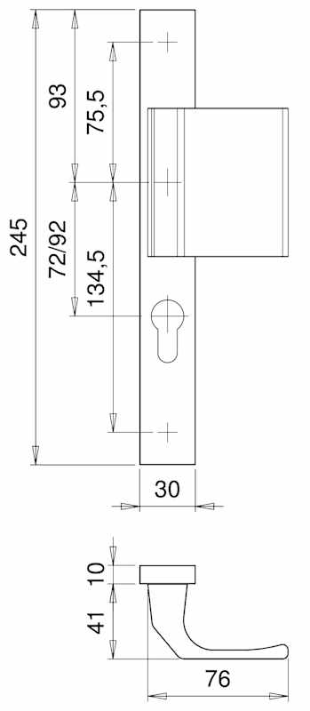 Wechselgarnitur PAN 1312/7203, Langschild eckig, Profilzylinder gelocht, Entfernung 72mm, Vierkant 8, DIN Links-Rechts, Türstärke 68 - 75mm, ohne Stütznocken, verkehrsweiß beschichtet, festdrehbar