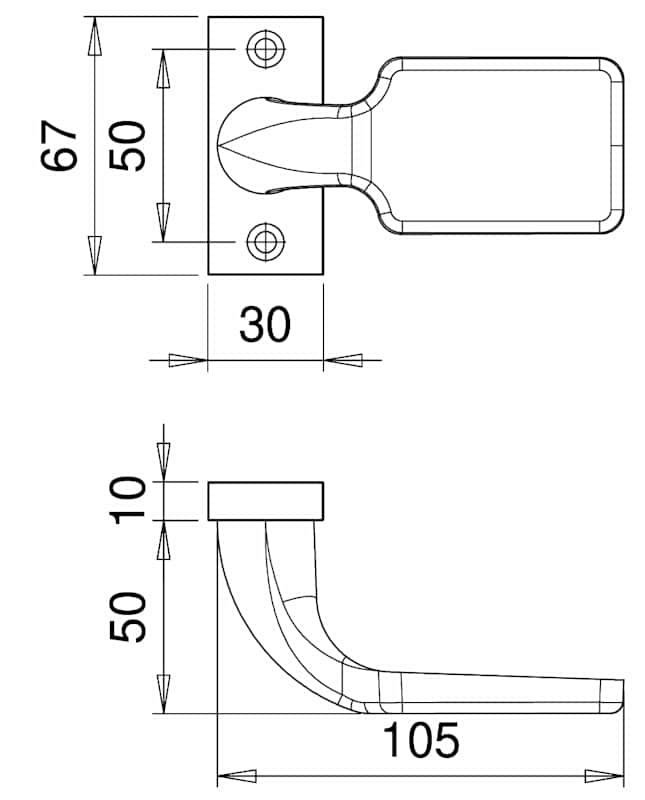 Knopf Vesta 1315/1010, Ausführung Türgriff (außen) drehbar, Rosette, eckig, Vierkant 8mm, DIN Links-Rechts, ohne Stütznocken, naturfarben eloxiert festdrehbar