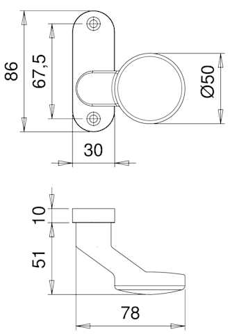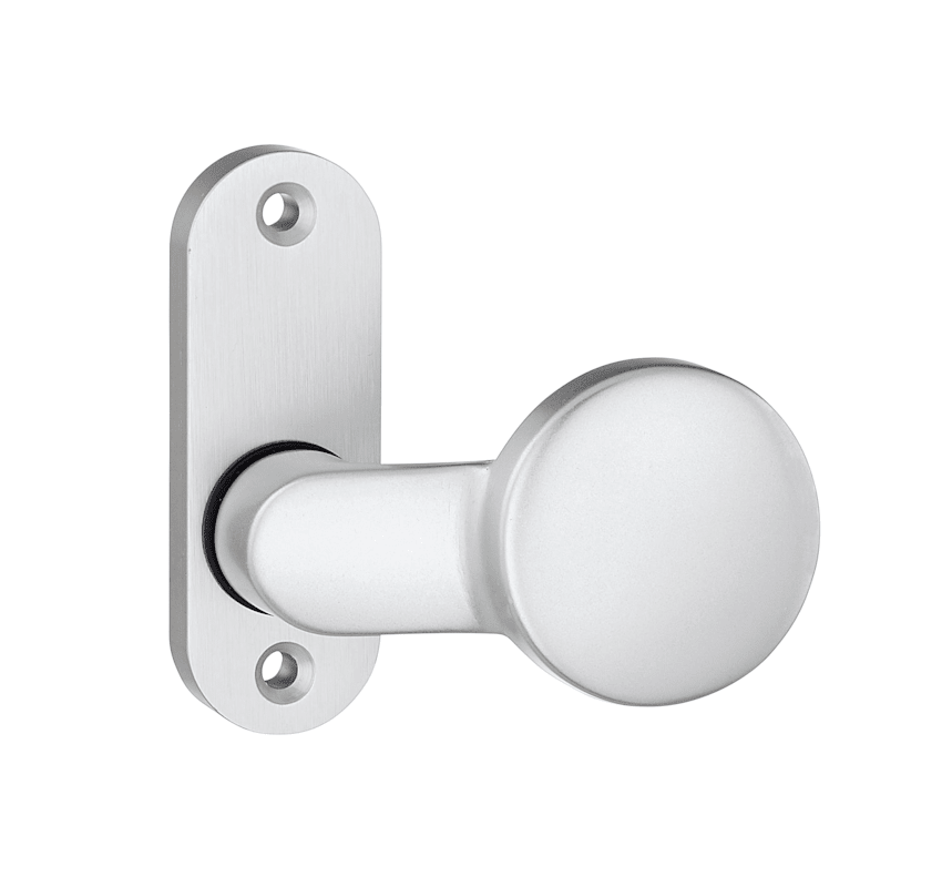 Knopf Dione 1352/1610, Ausführung Türgriff (außen) drehbar, Rosette, oval, Vierkant 8mm, DIN Links-Rechts, mit Stütznocken, naturfarben eloxiert festdrehbar