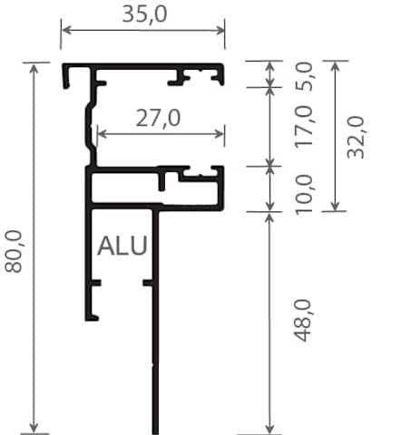 ALU Rollladenführung 80x35 mm Lg. 6,50 m foliert, GK Grau 446 7062 JET BLACK SFTN CC+ [146]