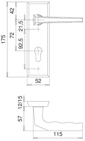 Vollblatt Sicherheits-Drückergarnitur Rondo 8638,Kurzschild,ES 0,ohne Zylinderabdeckung 72/8,DIN Links-Rechts,naturfarben eloxiert,Türstärke35-45,Fingerform gekröpft/Fingerform gekröpft