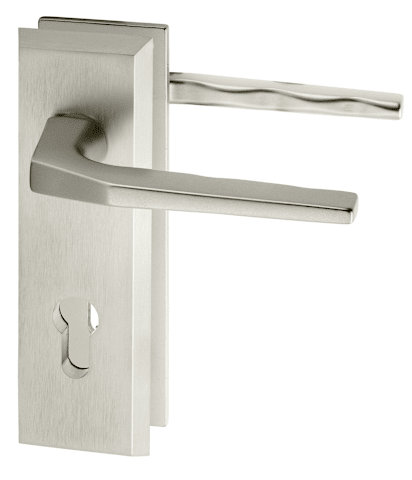 Vollblatt Sicherheits-Drückergarnitur Alpha 8773,Kurzschild,ES 1,ohne Zylinderabdeckung 72/8,DIN Links-Rechts,neusilberfarben eloxiert,Türstärke35-45,Fingerform gekröpft/Fingerform gekröpft
