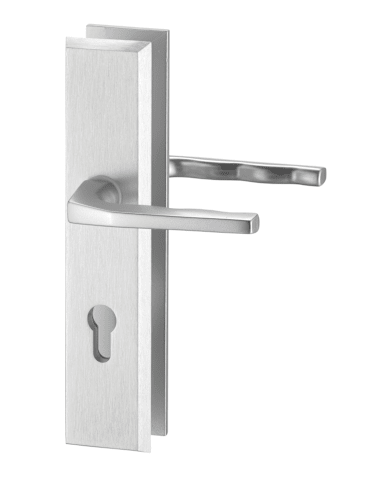 Vollblatt Sicherheits-Drückergarnitur Alpha 8775,Langschild,ES 1,ohne Zylinderabdeckung 92/10,DIN Links-Rechts,naturfarben eloxiert,Türstärke65-75,Fingerform gekröpft/Fingerform gekröpft