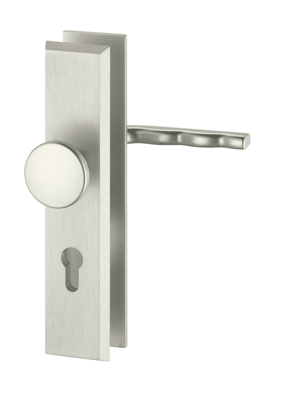 Vollblatt Sicherheits-Wechselgarnitur Rondo 8625,Langschild,ES 0,ohne Zylinderabdeckung 92/10,DIN Links-Rechts,neusilberfarben eloxiert,Türstärke65-75,rund/Fingerform gekröpft fest