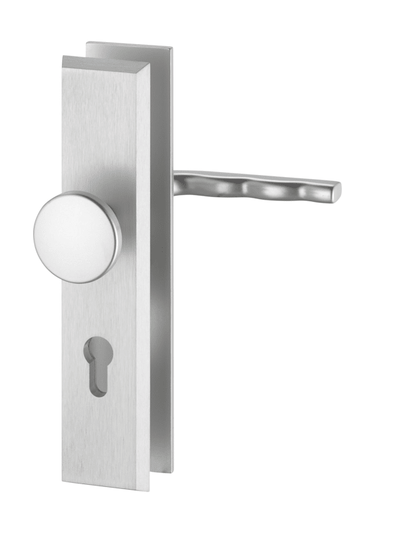 Vollblatt Sicherheits-Wechselgarnitur Rondo 8626,Langschild,ES 0,ohne Zylinderabdeckung 92/10,DIN Links-Rechts,naturfarben eloxiert,Türstärke65-75,rund/Fingerform gekröpft fest