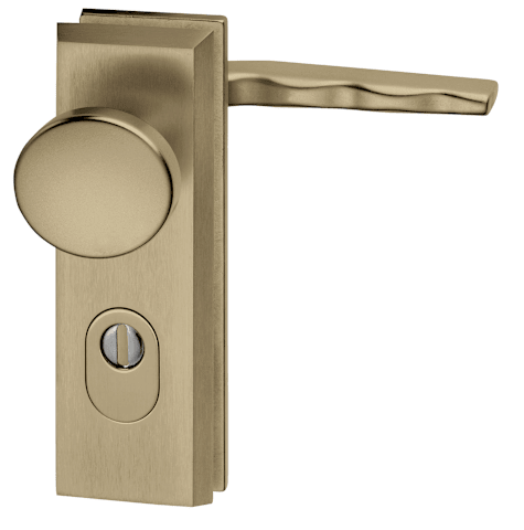 Vollblatt Sicherheits-Wechselgarnitur Alpha 8651,Kurzschild,ES 1,mit Zylinderabdeckung 72/8,DIN Links-Rechts,bronzefarben eloxiert,Türstärke35-45,rund/Fingerform gekröpft fest